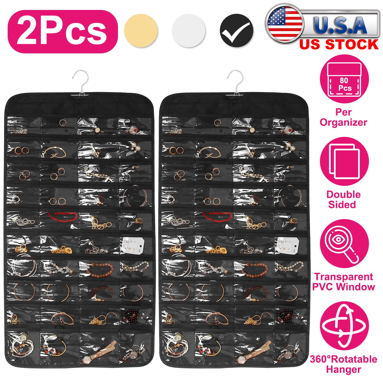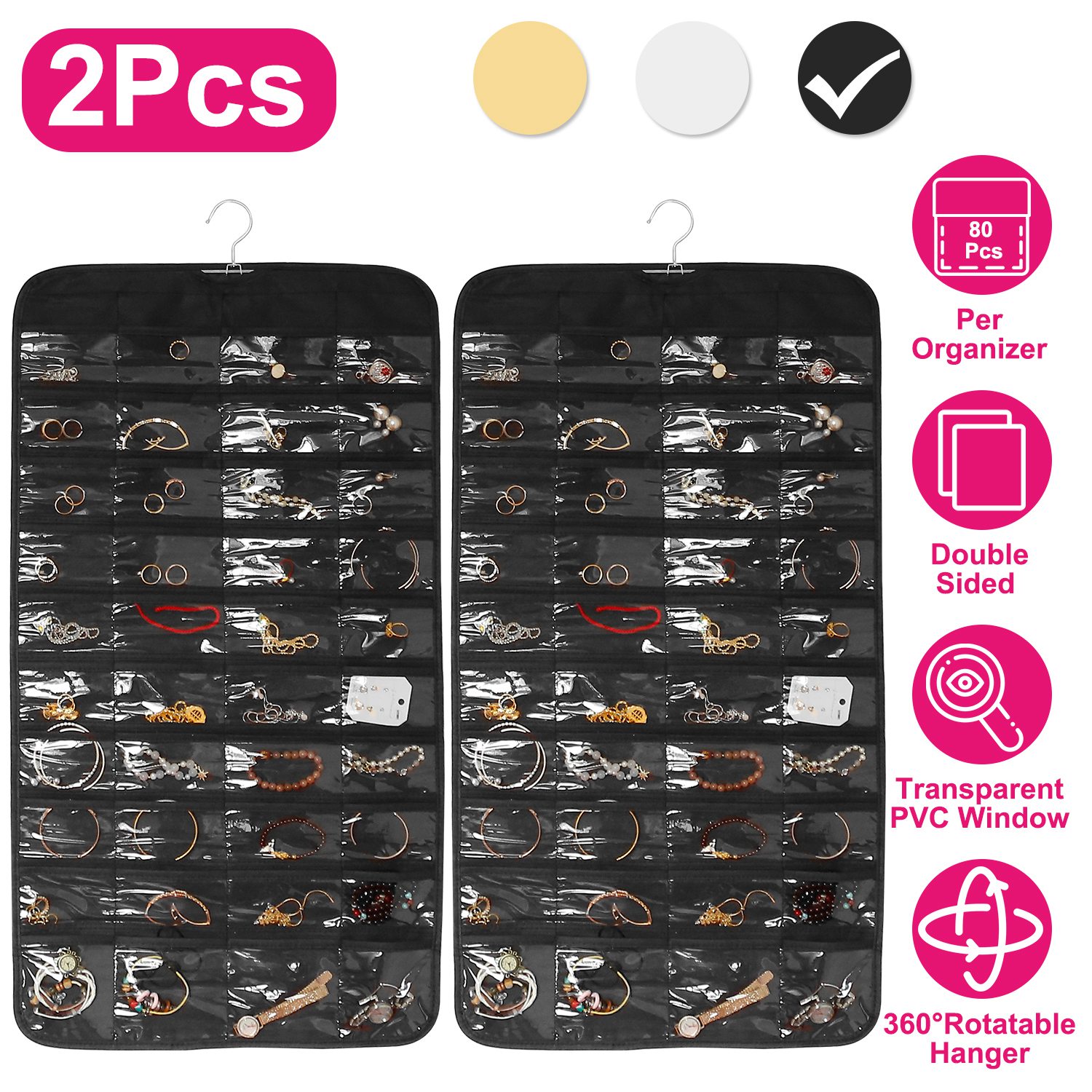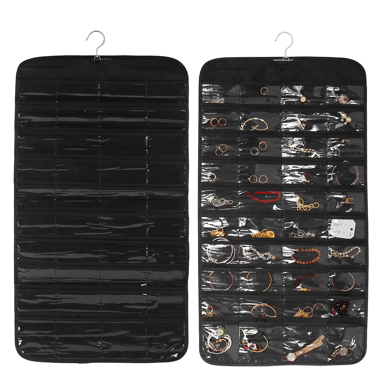 Home > 2Pcs Hanging Jewelry Organizer Earring Necklace Bracelet Holder Double-sided 80 Pockets Accessory Storage Pocket