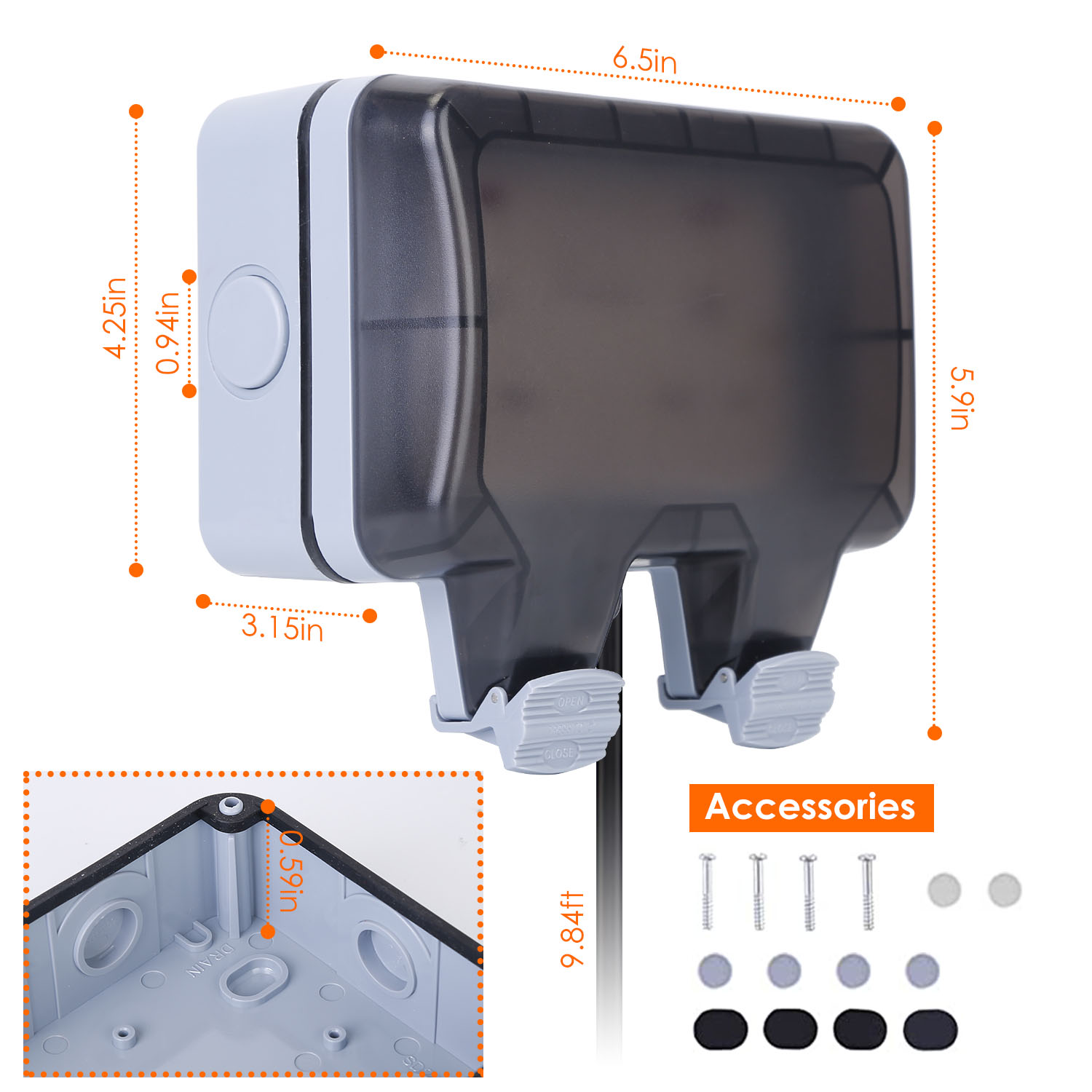 Double Outdoor Socket IP66 Waterproof 13A 2 Gang UK Plug Twin Switched Double Socket Electrical Wall Outlet Socket Box w/ 9.84ft Extension Cable