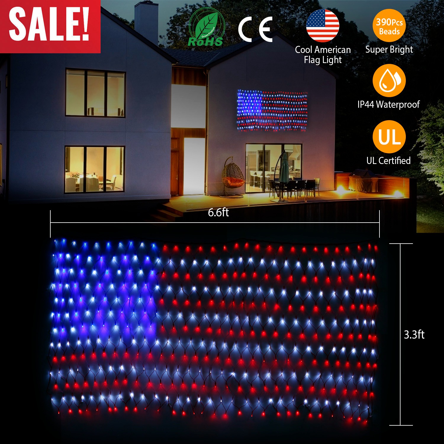 Home > American Flag String Lights 390Pcs LED Beads Flag Net Light Waterproof Patriotic Flag Lamp w/ Plug for Garden Patio July 4th National Day Independence